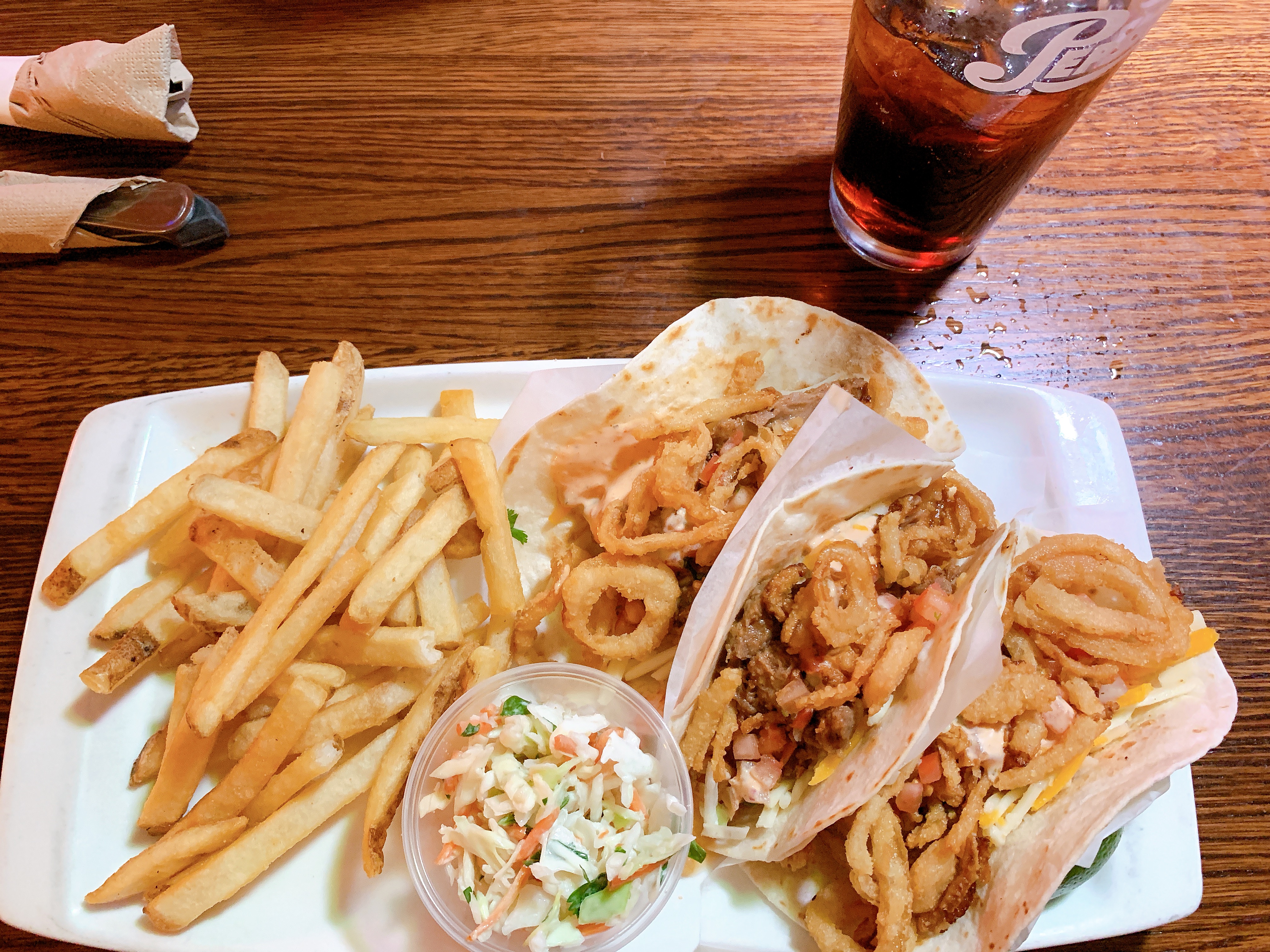 We brengen onze proviand naar de hotelkamer en rijden meteen door naar het restaurant van vandaag. Dit keer gaan wij naar Applebee’s. Bij de eerste Applebee’s staat een enorm rij, maar bij een Applebee’s 4 kilometer verderop zijn wij na 5 minuten aan de beurt. Noah kies voor een mac and cheese, voor Isa taco’s en Angelique en ik kiezen voor rijst met groenten en kip in een zoetzure saus. Het smaakt voortreffelijk en dankzij de menukaart weten wij precies hoeveel calorieën wij tot ons genomen hebben.