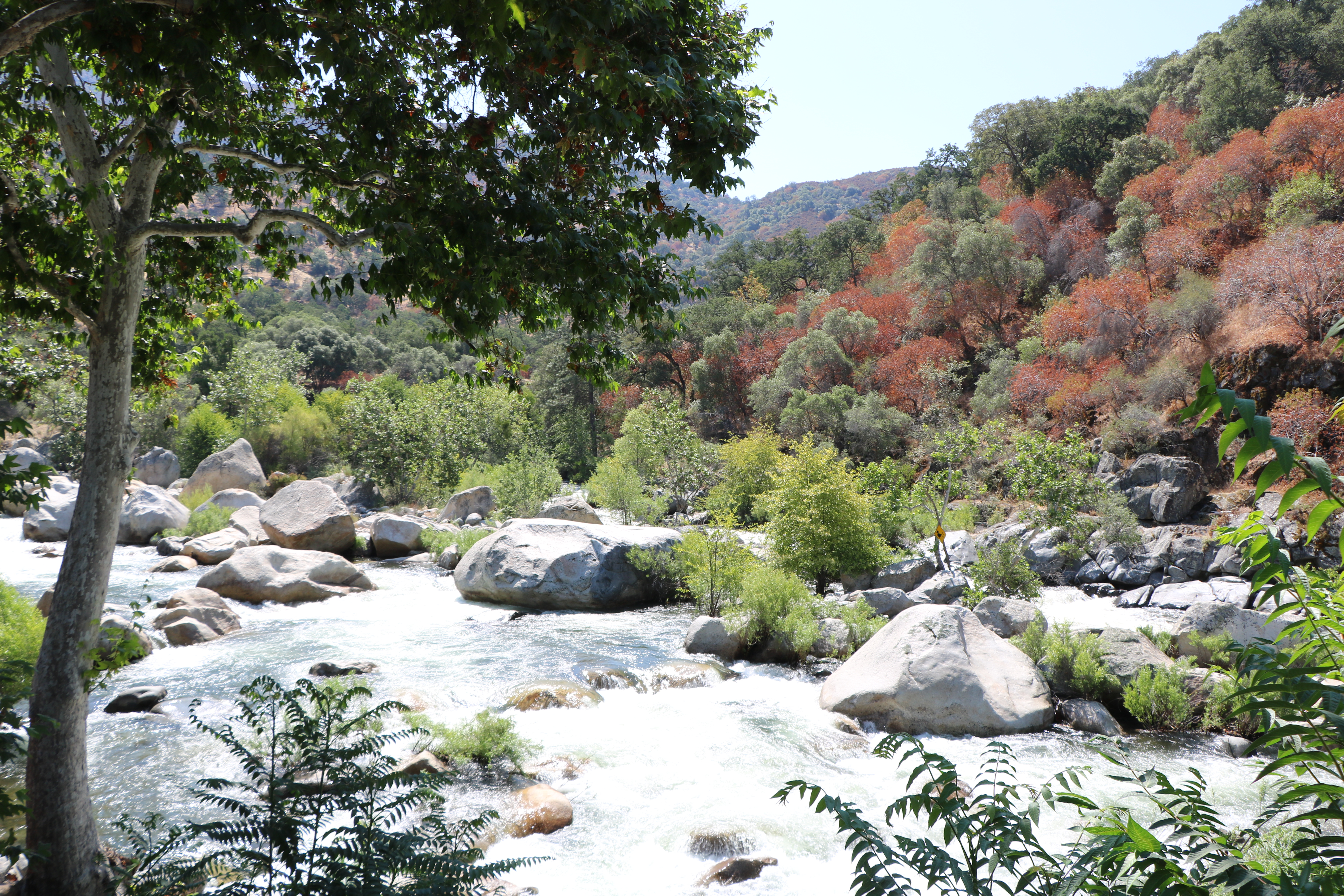 Wij komen langs boomgaarden met sinasappels, citroenen, avocado’s, en olijfbomen. Onderweg even stoppen bij het Kaweah meer.