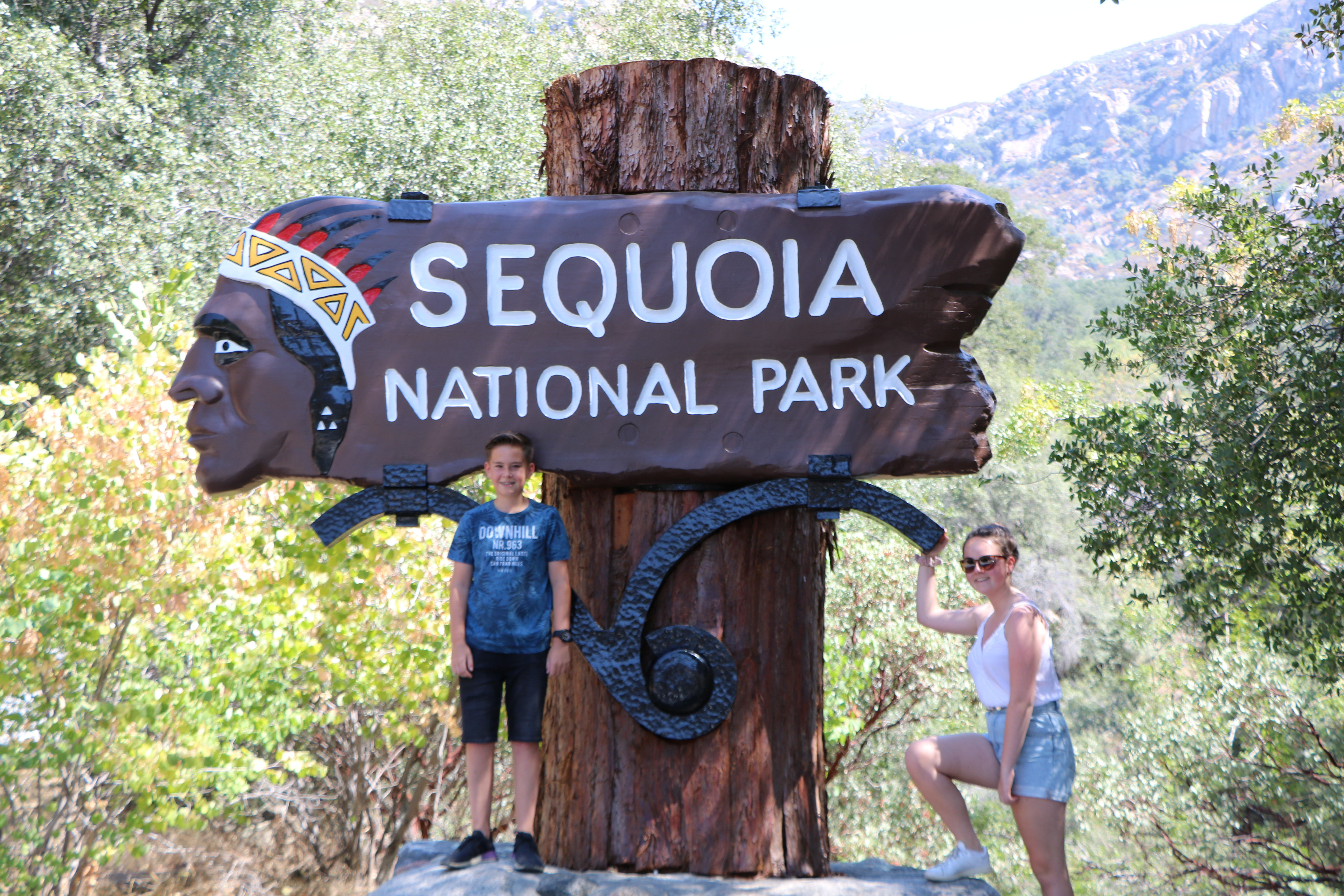 Voor de ingang van het park staat een kleine rij met auto’s maar wij mogen doorrijden omdat wij pas hebben die toegang geeft tot alle nationale parken. Eerst even een sanitaire stop en dan door naar “the giant forrest”. Voor Angelique en mij een hernieuwde kennismaking met dit park maar het blijft indrukwekkend. Het dynamische duo vind het geweldig en wij wandelen een aantal trials naar een uitzicht punt en langs de gigantische bomen. Hieronder een kleine impressie van het park.