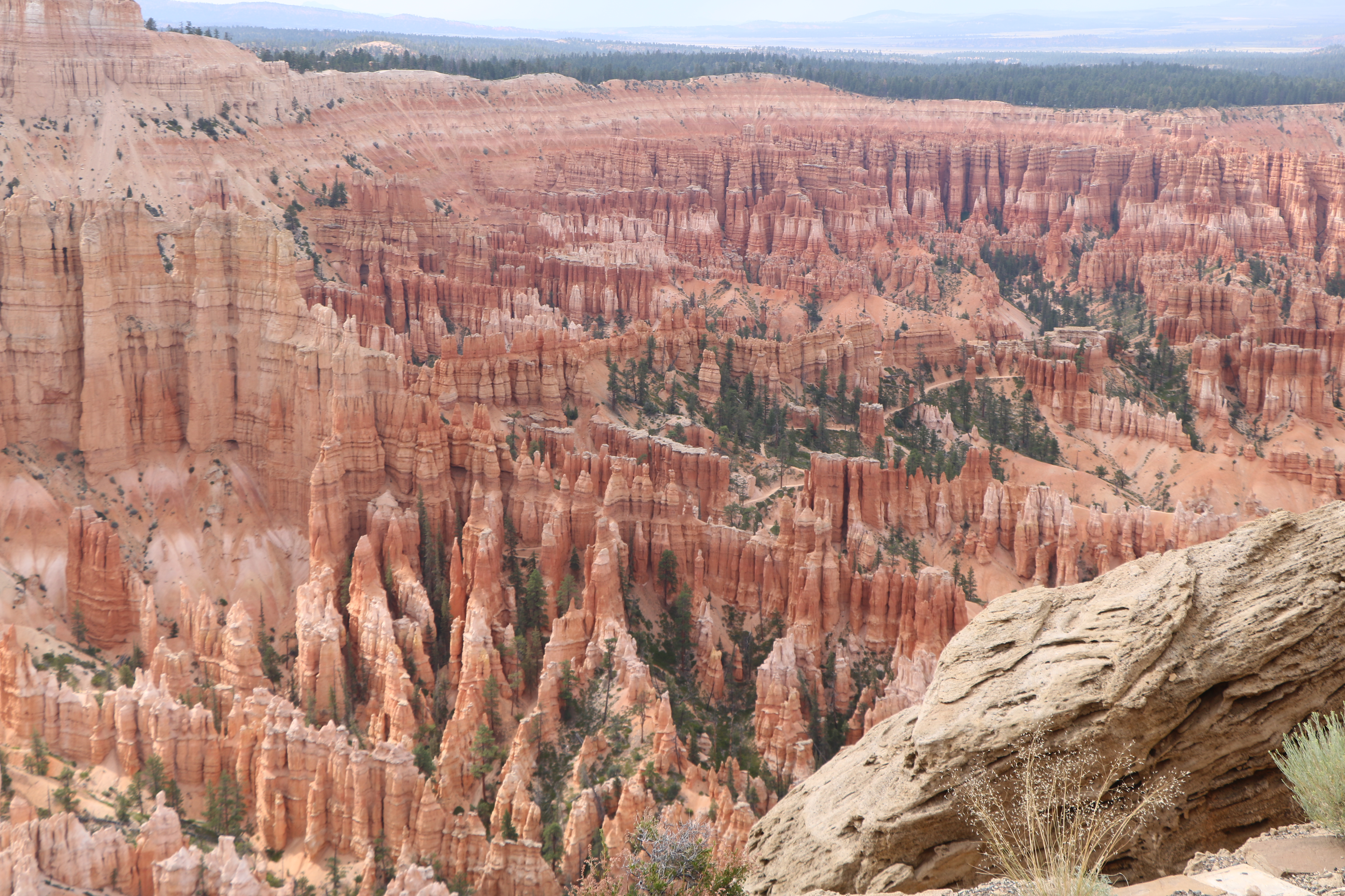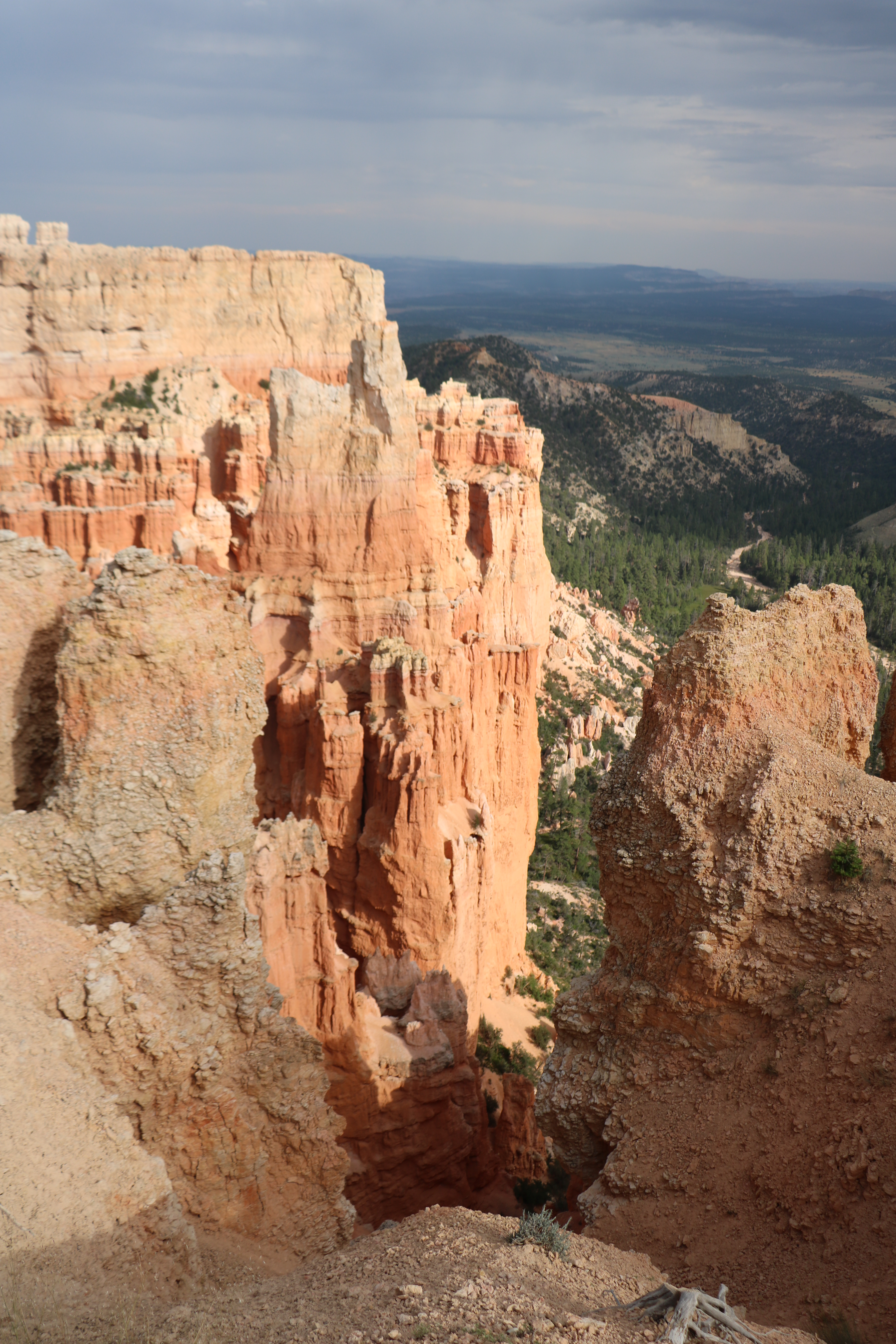 Als wij op 10 mijl afstand van Bryce Canyon regent het echter nog steeds en boven Bryce Canyon worden wij regelmatig getrakteerd op mooie ontladingen. Wij vragen ons af wat wij het beste kunnen doen. Eerste naar ons hotel (ligt op 1 mijl afstand van de ingang van het nationale park) en dan afwachten of het weer beter wordt of toch meteen het park in. Wij kiezen het laatste en dat blijkt een goede keuze. Tegen de tijd dat wij bij Bryce Canyon zijn klaart het snel op, het is heerlijk buiten.