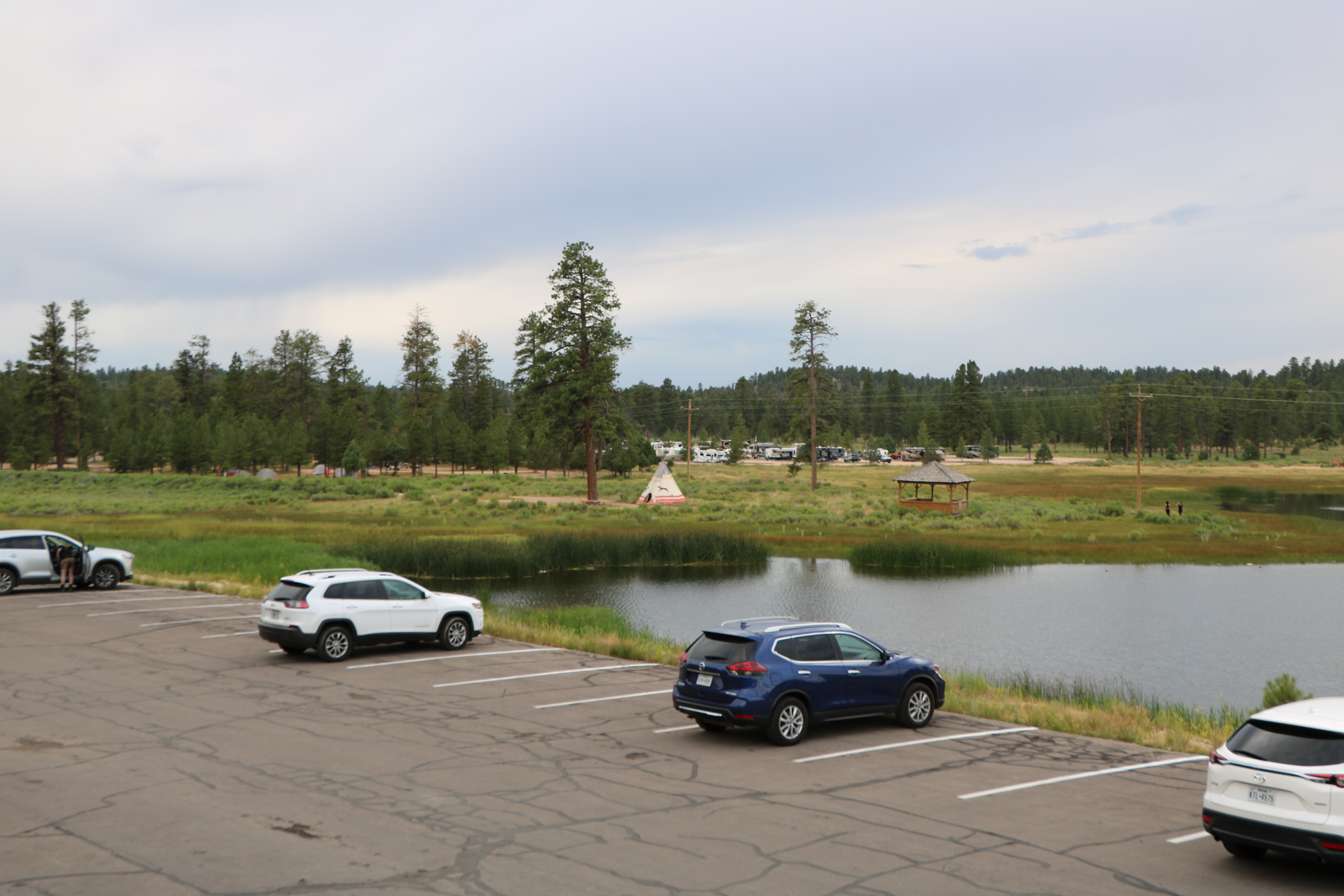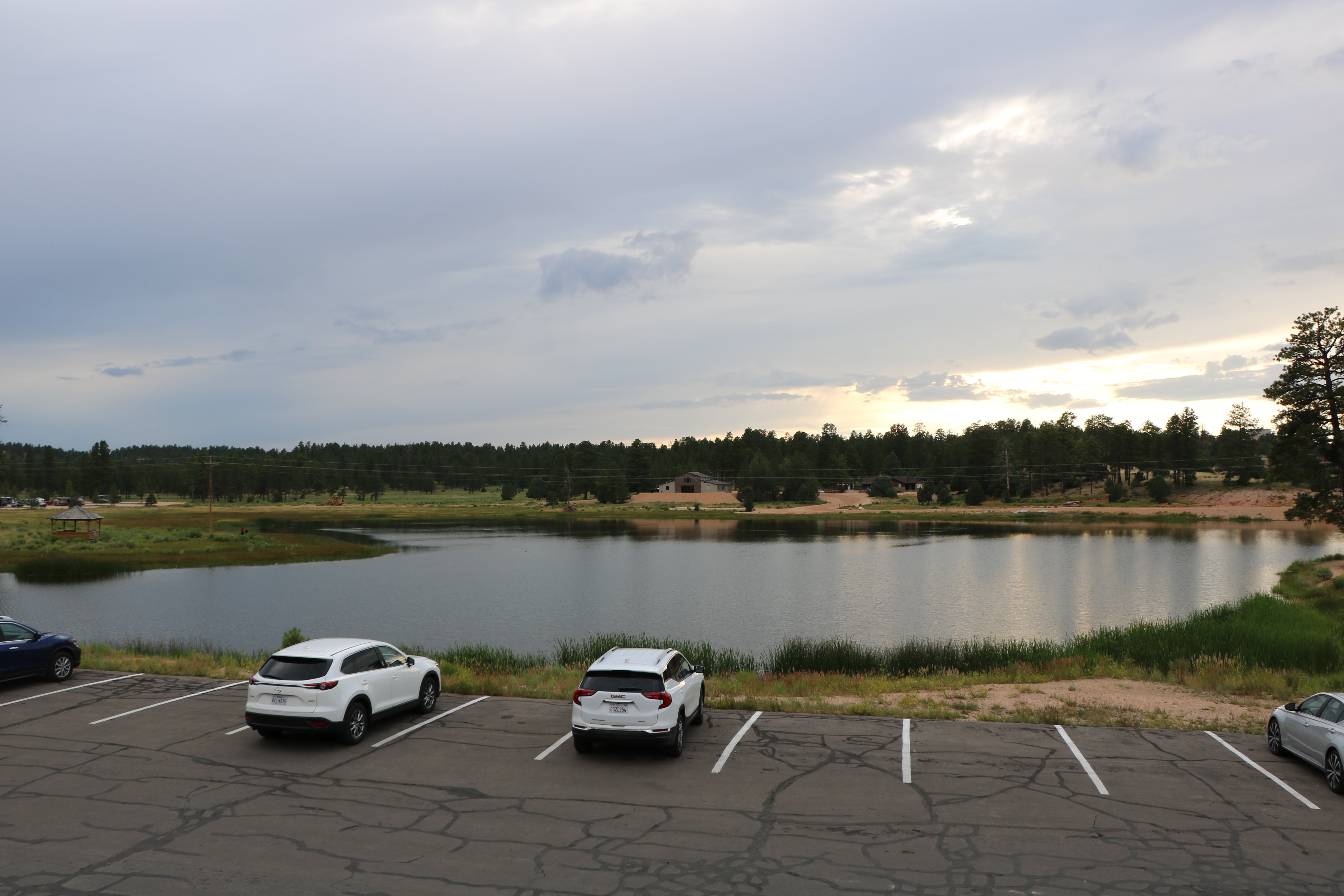 Nadat wij Sunset Point bezocht hebben gaan wij naar ons hotel. Ook hier verloopt het inchecken voorspoedig. Wij krijgen een kamer met uitzicht op een meer.