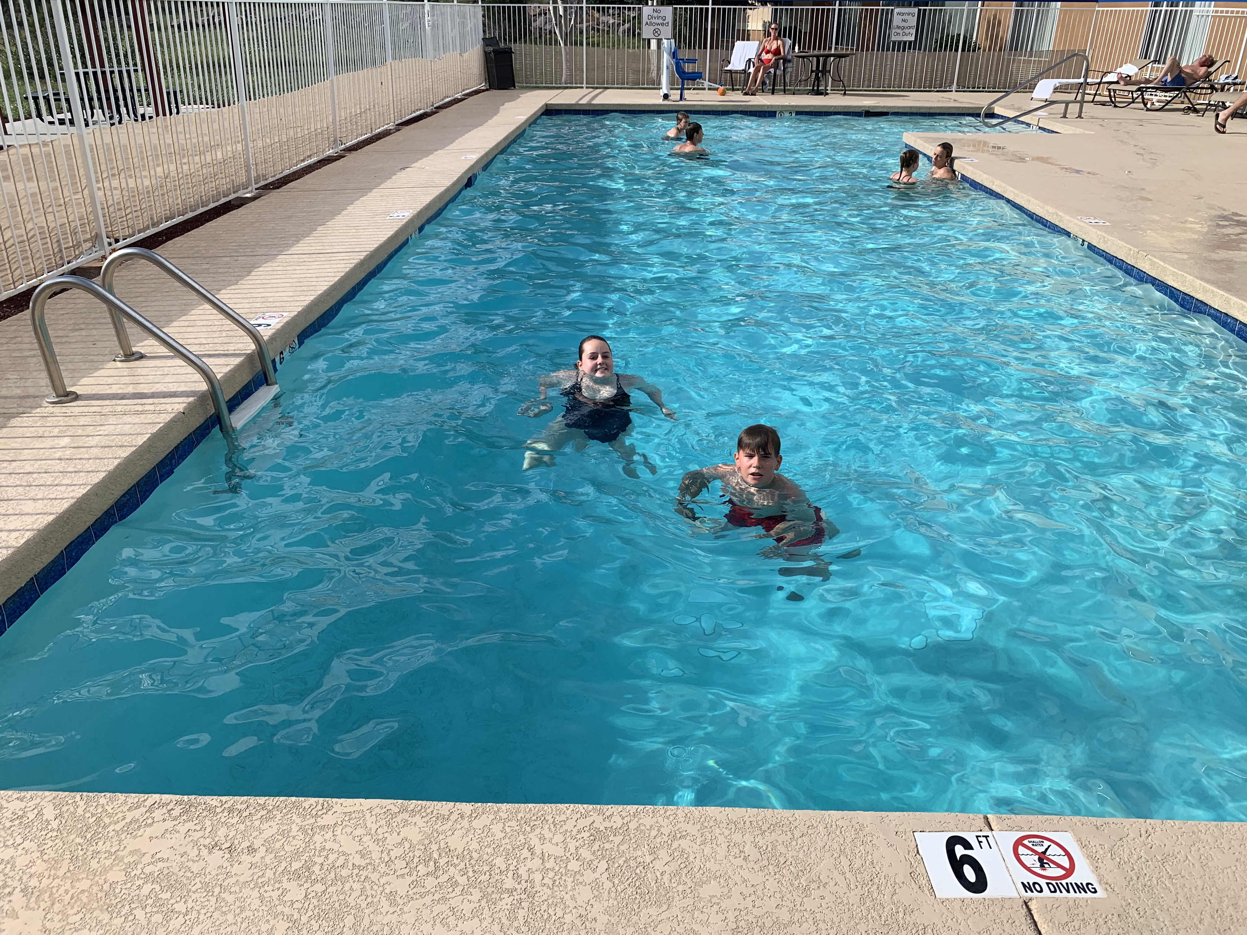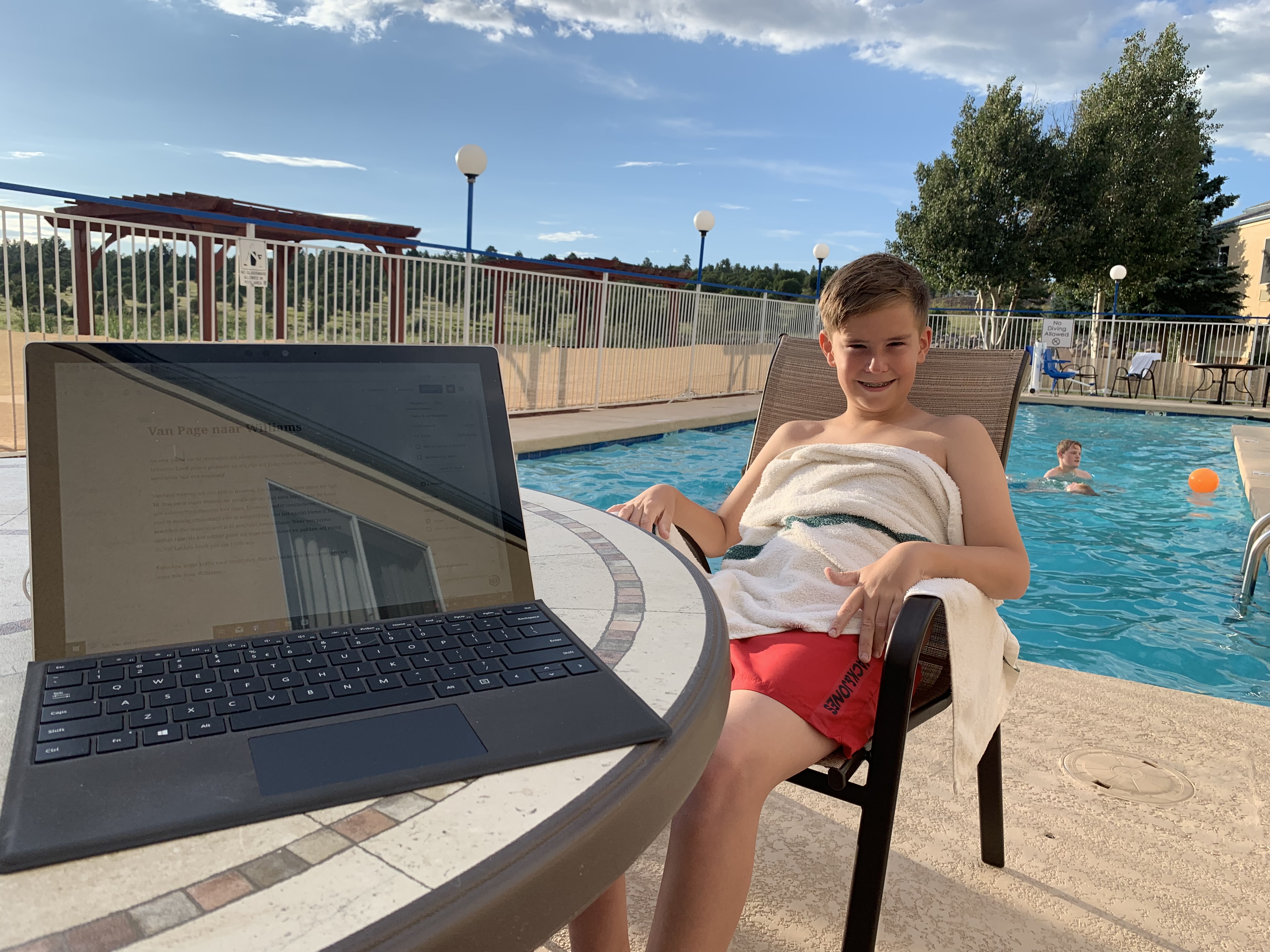 Wij lopen nog even door het centrum van Flagstaff en vervolgen onze reis naar Williams. Vanaf Flagstaff is het nog circa 45 minuten rijden. Wij beloven het dynamische duo dat wij nog even naar het zwembad gaan. Angelique leest een boek en geniet van de zon, Isa en Noah ravotten in het water en ik werk aan het eerste bericht van vandaag.