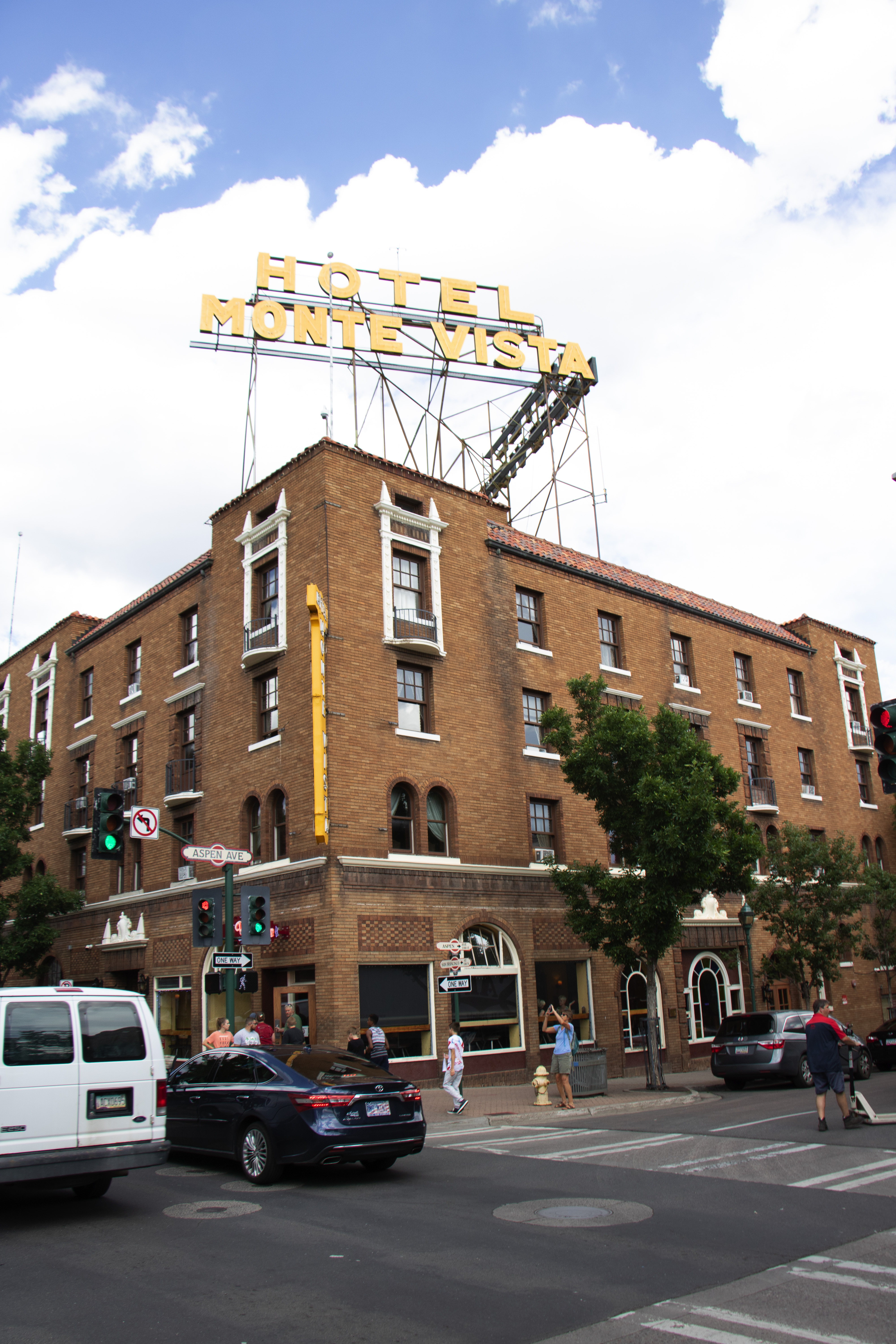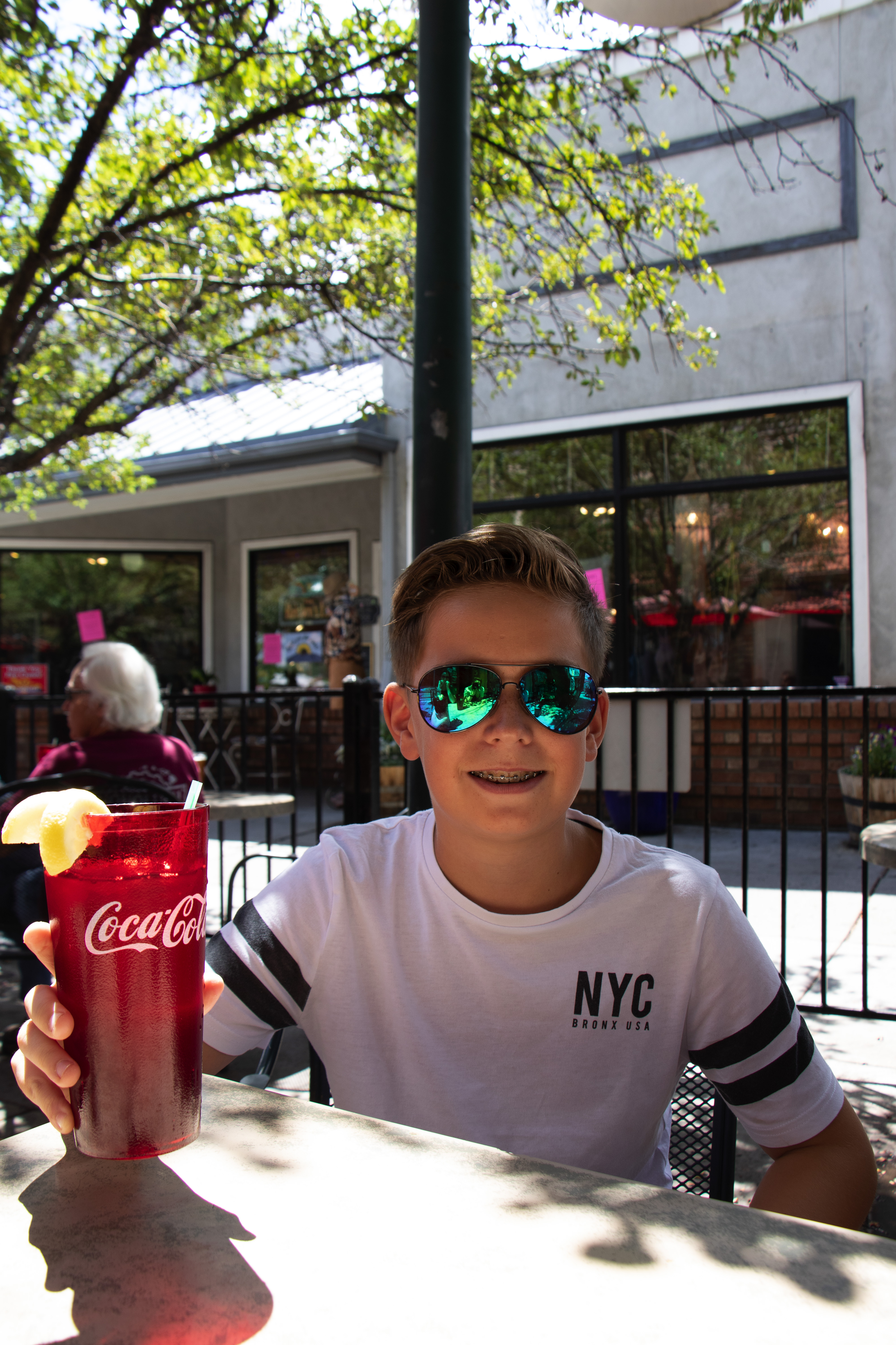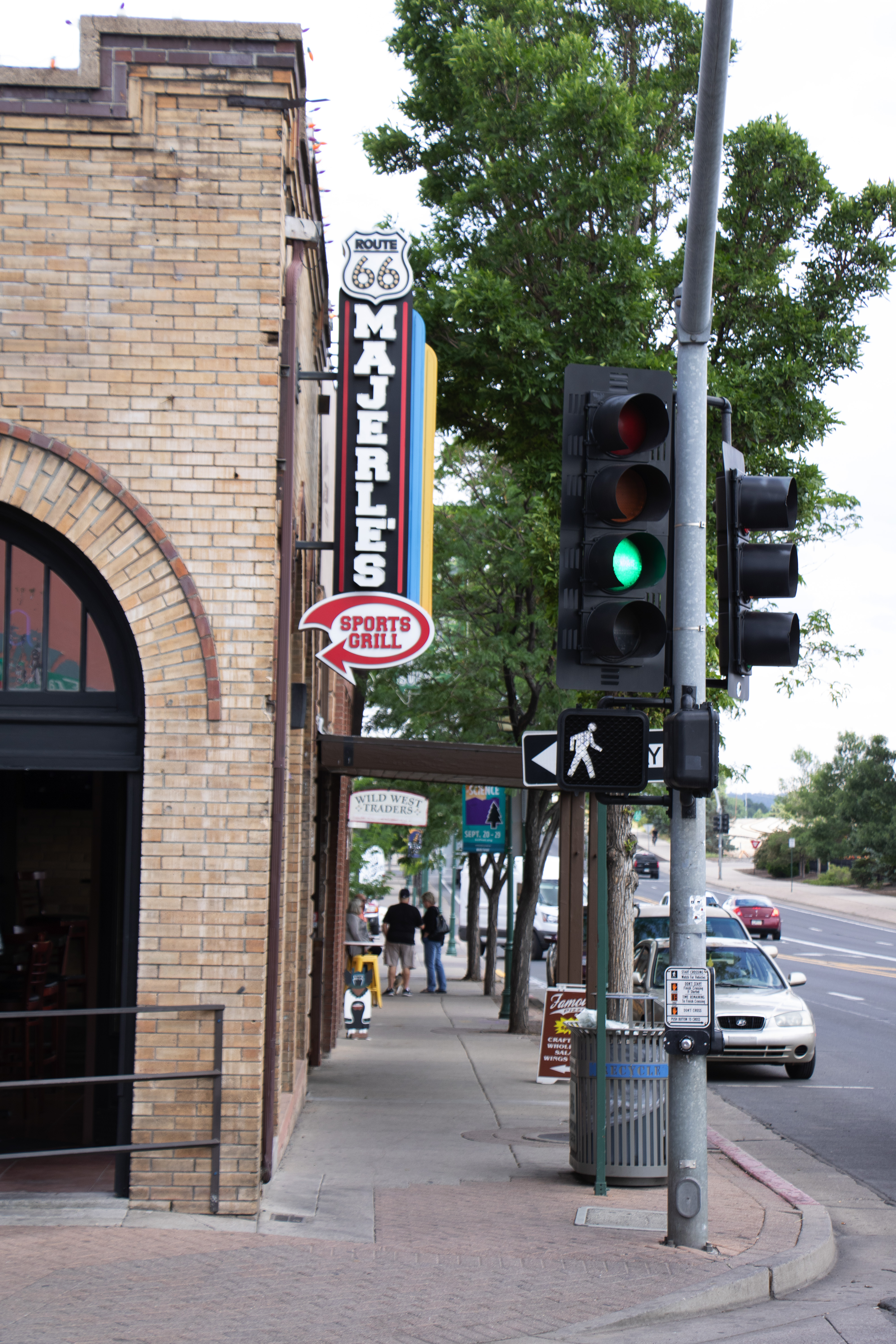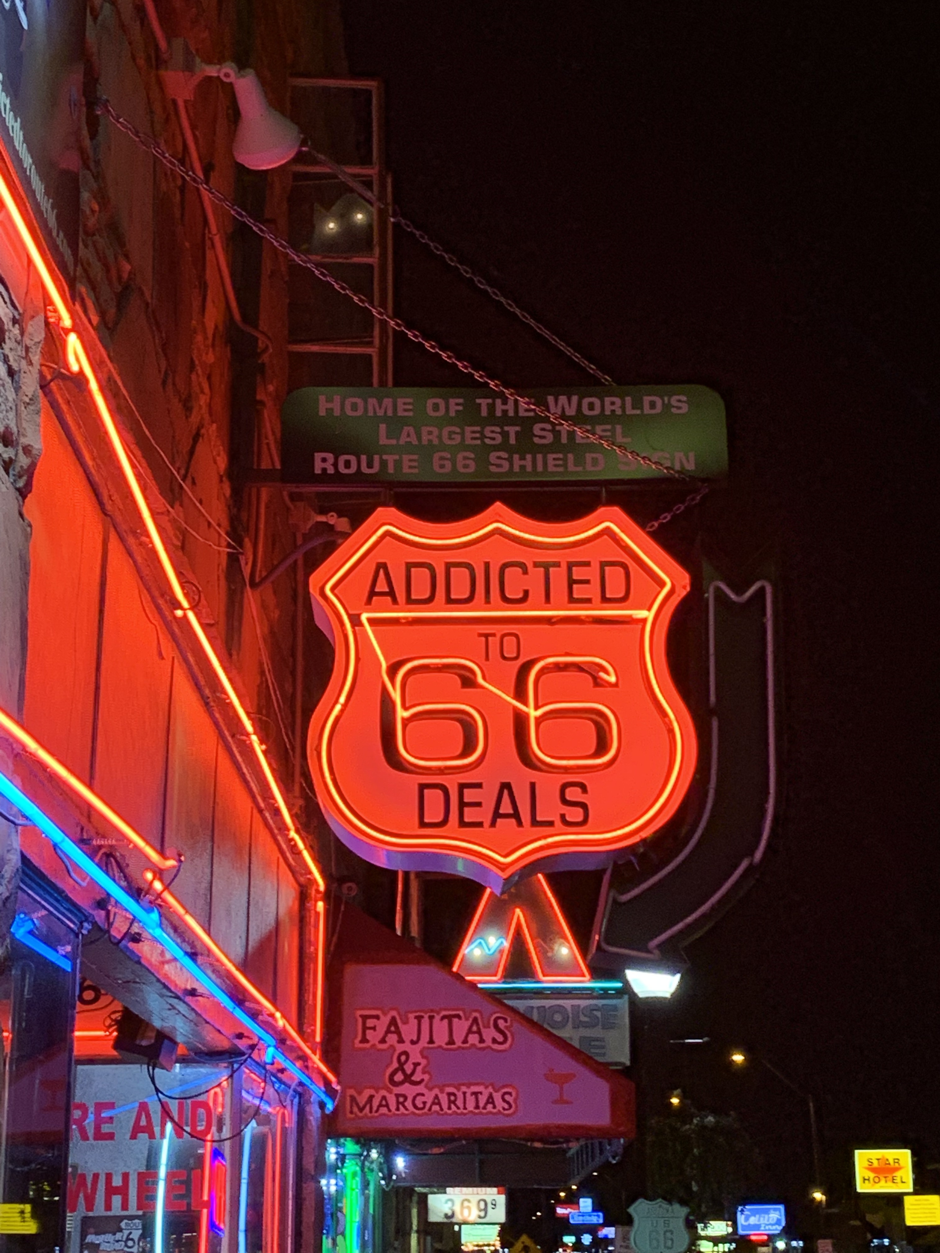 Ik vermoed dat jullie het goed geraden hebben. Inmiddels is het tijd voor de lunch en dat is te merken aan de verbale en non verbale signalen die wij van de achterbank krijgen. Wij rijden door naar Flagstaff een plaatsje aan Route 66. Daar nemen wij plaats bij een lokale brouwerij/restaurant en kunnen wij zelfs buiten zitten. Angelique en Isa kiezen voor een salade waar zoveel knoflook in zit dat zelf de vampieren de kleine stad verlaten en Noah en ik kiezen voor een broodje met gegrilde kip in habanero saus die ervoor zorgt dat wij in vuur en vlam staan. Maar het smaakt weer prima.