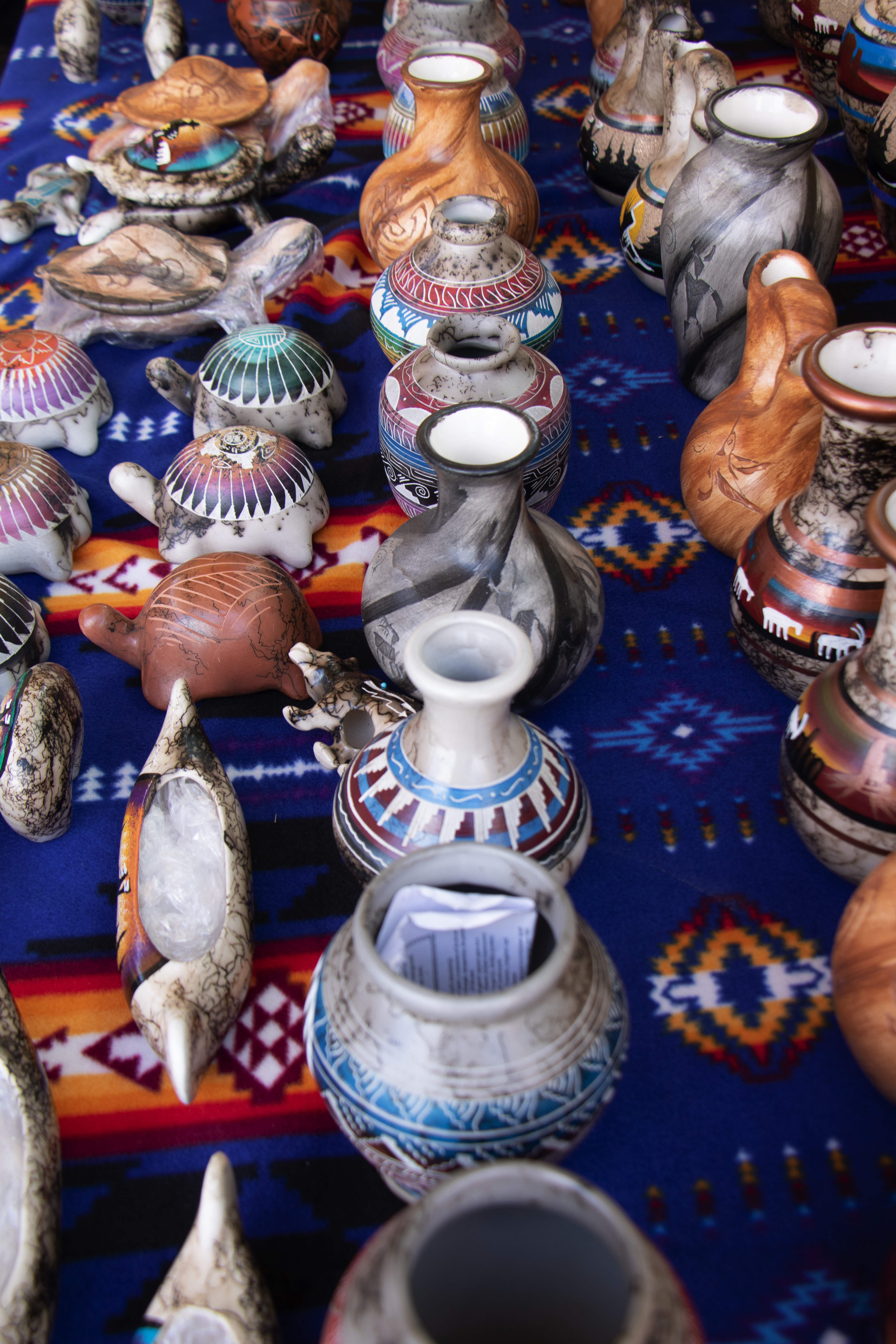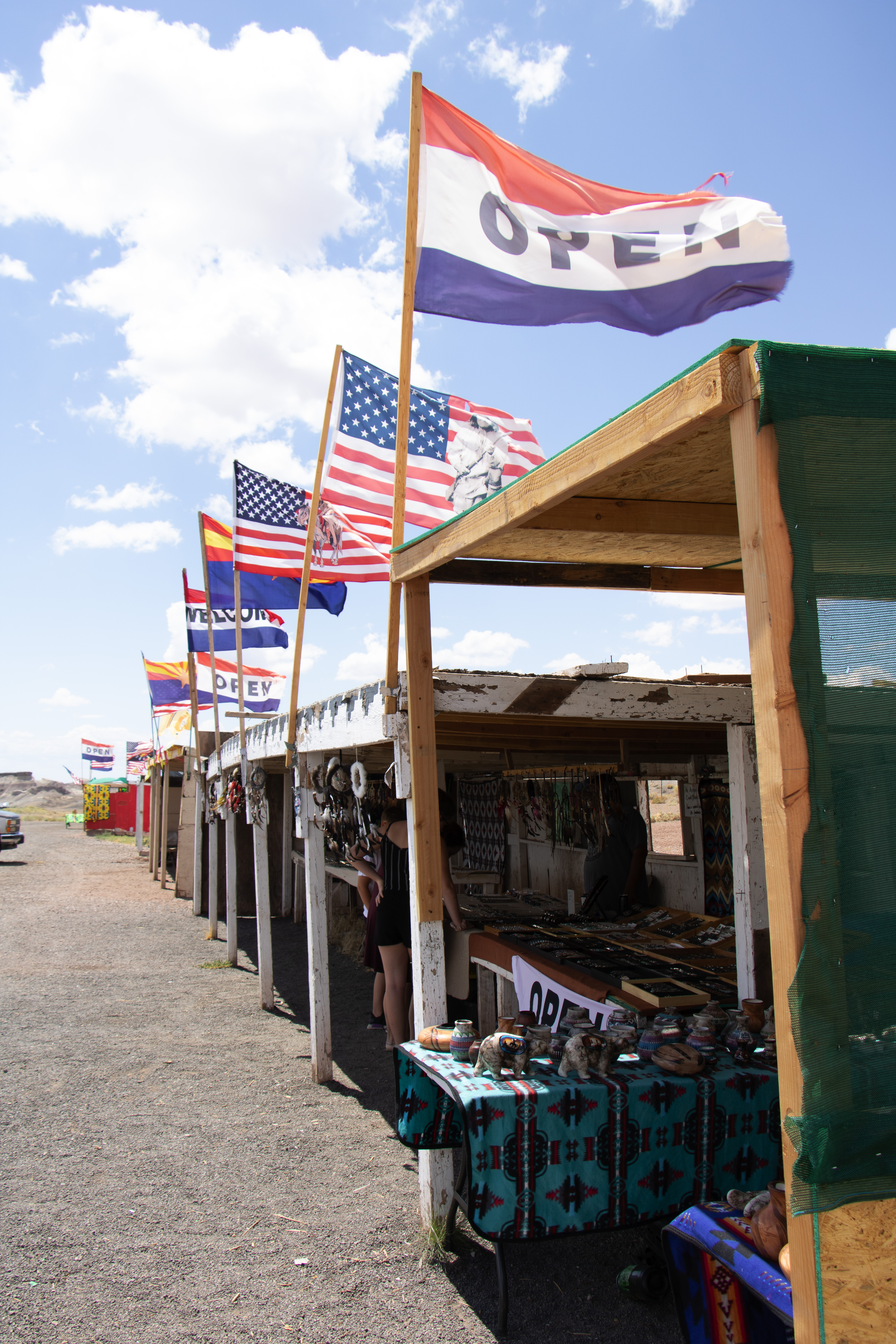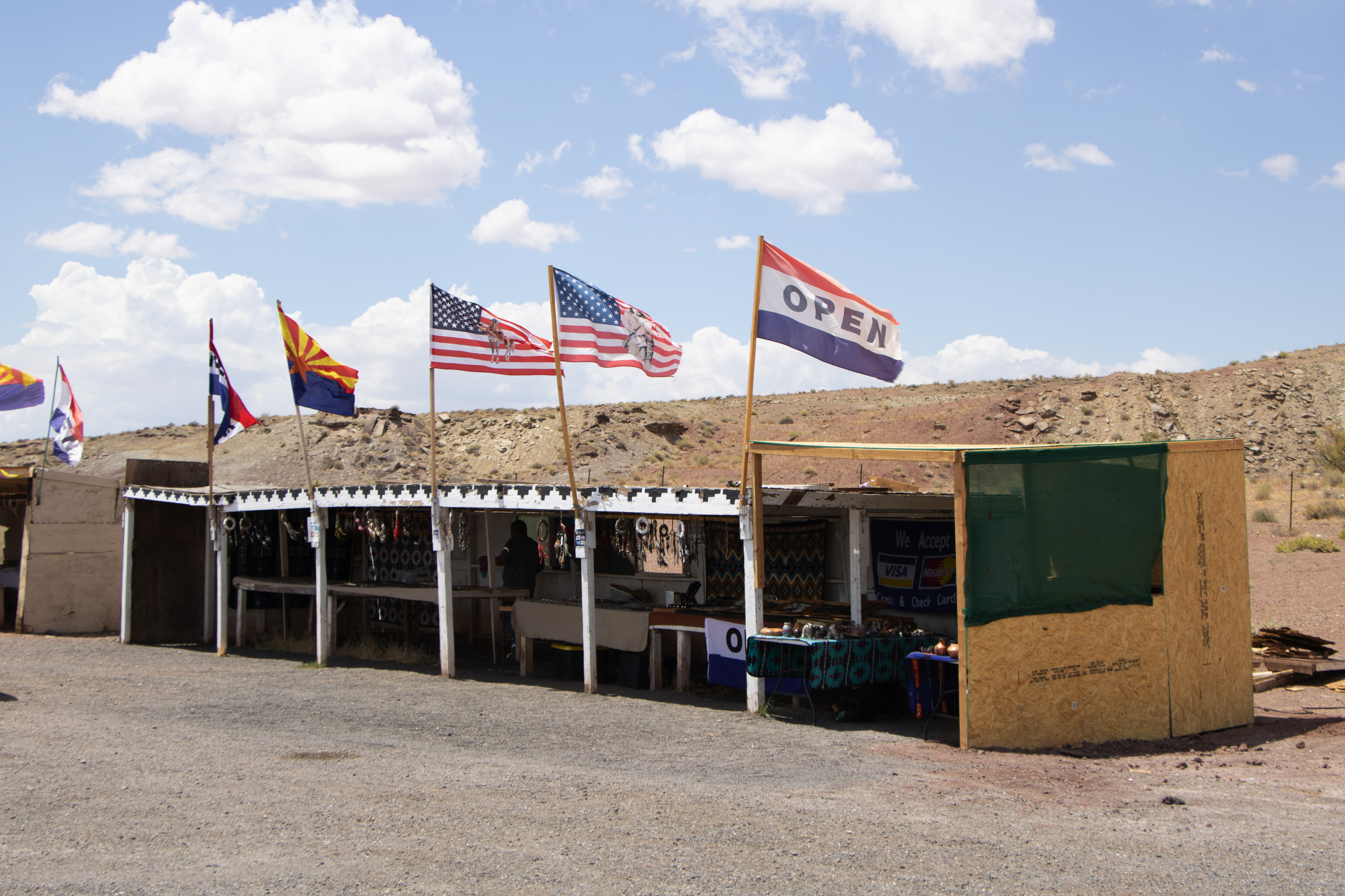 Onderweg komen wij steeds vaker “kraampjes” tegen waar indianen originele “hand crafted” souvenirs verkopen. Wij stoppen bij een kraampje en de slecht verstaanbare indiaan probeert ons in het Engels de betekenis uit te leggen van de diverse afbeeldingen en stenen. Wij besluiten om de lokale economie te stimuleren.