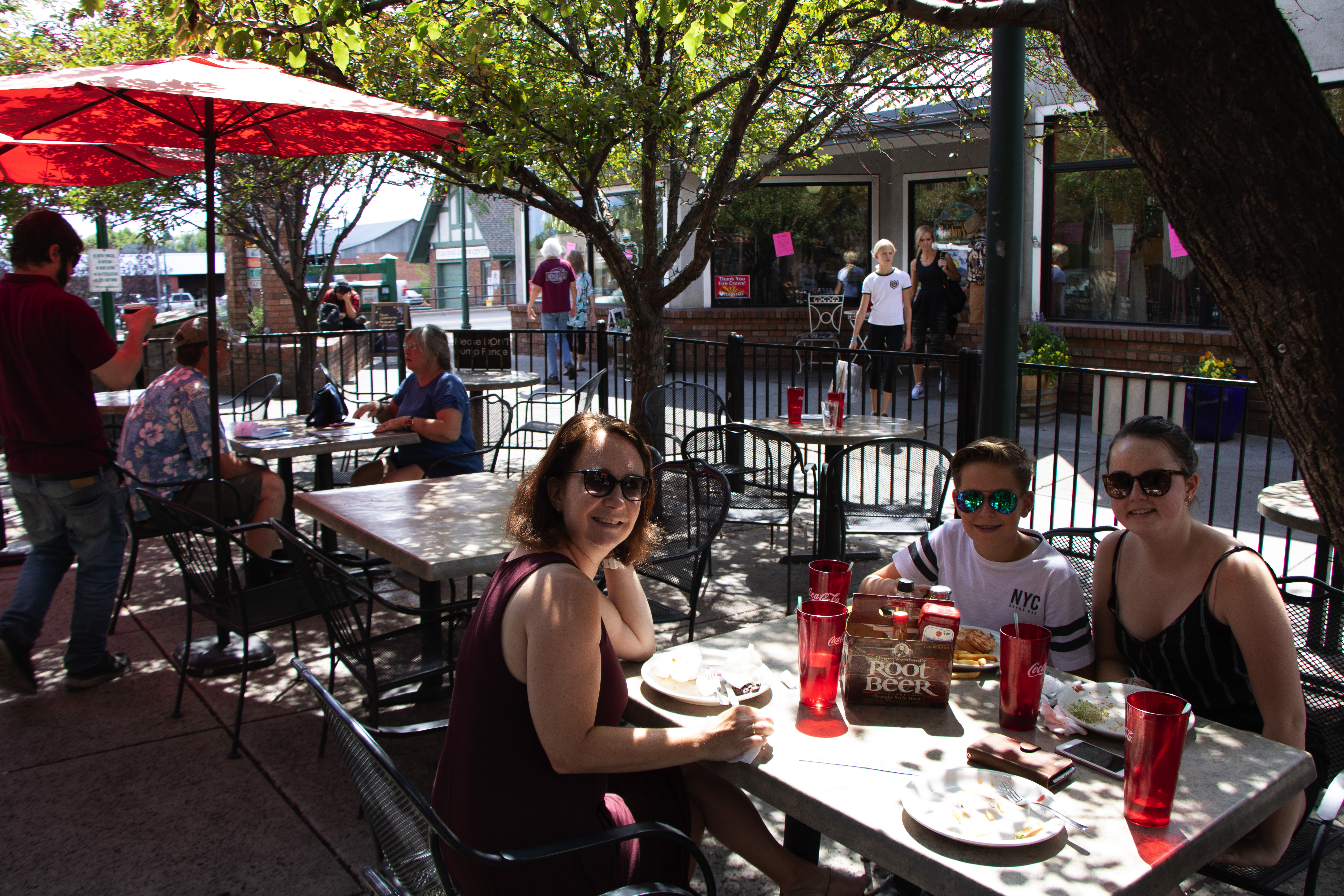 Rond een uur of 7 rijden wij naar het leuke gezellige centrum van Williams en dankzij onze steun en toeverlaat Yelp komen wij weer bij een prima Italiaans restaurant terecht. Wij kunnen alweer buiten plaatsnemen en onder het genot van live country muziek en een vriendelijke bediening van onze maaltijd genieten.