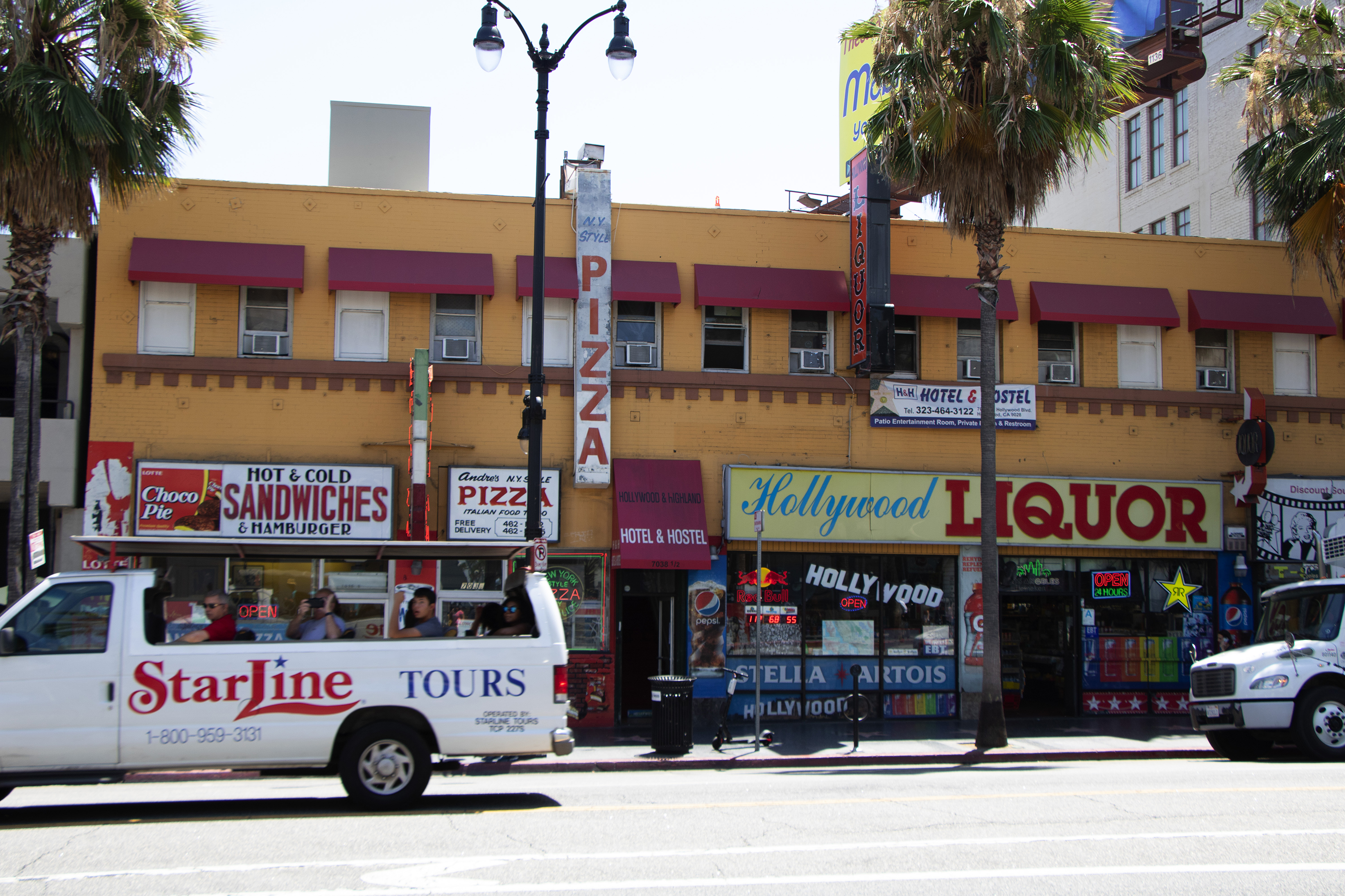 Wij laten Palm Springs achter ons nadat wij eerst de inwendige mens verzorgd hebben. Het is een saaie rit. Ik begrijp nu wel waarom het zo eenvoudig is om in Amerika een zelf rijdende de auto voor op de autosnelwegen te ontwikkelen. Volgens mij hebben wij 200 kilometer lang geen bocht gezien. Het is één rechte weg tot aan Los Angeles. En dan ben je ineens weer in de bewoonde wereld. Wij ruilen de serene rust van Joshua Tree National Park in voor de immense drukte van Los Angeles en nu Hollywood in het bijzonder. Wat een verschil, hier moeten wij even aan wennen. Overal mensen, schreeuwende reclameborden voor films en series en veel zwervers op de been.