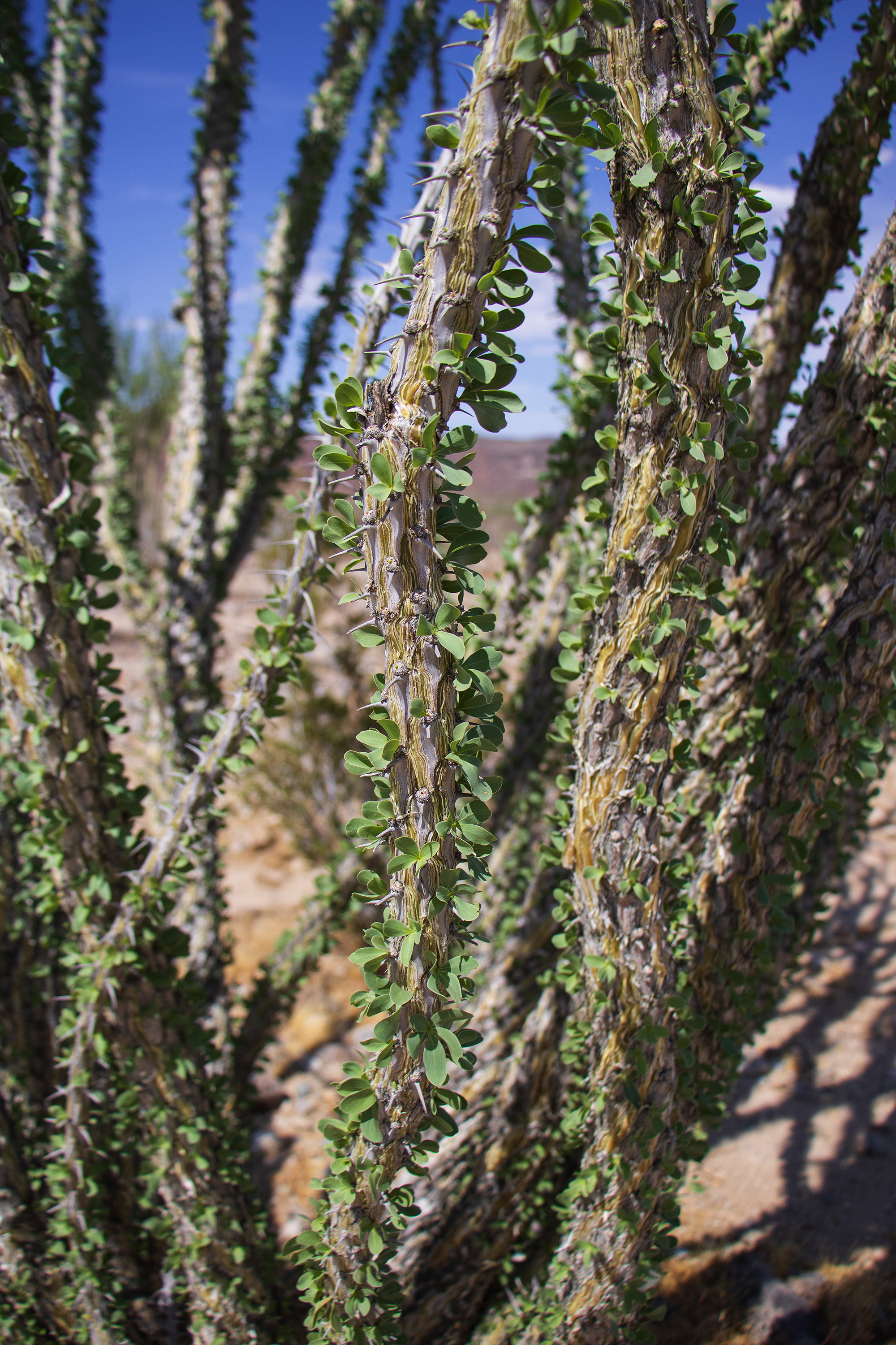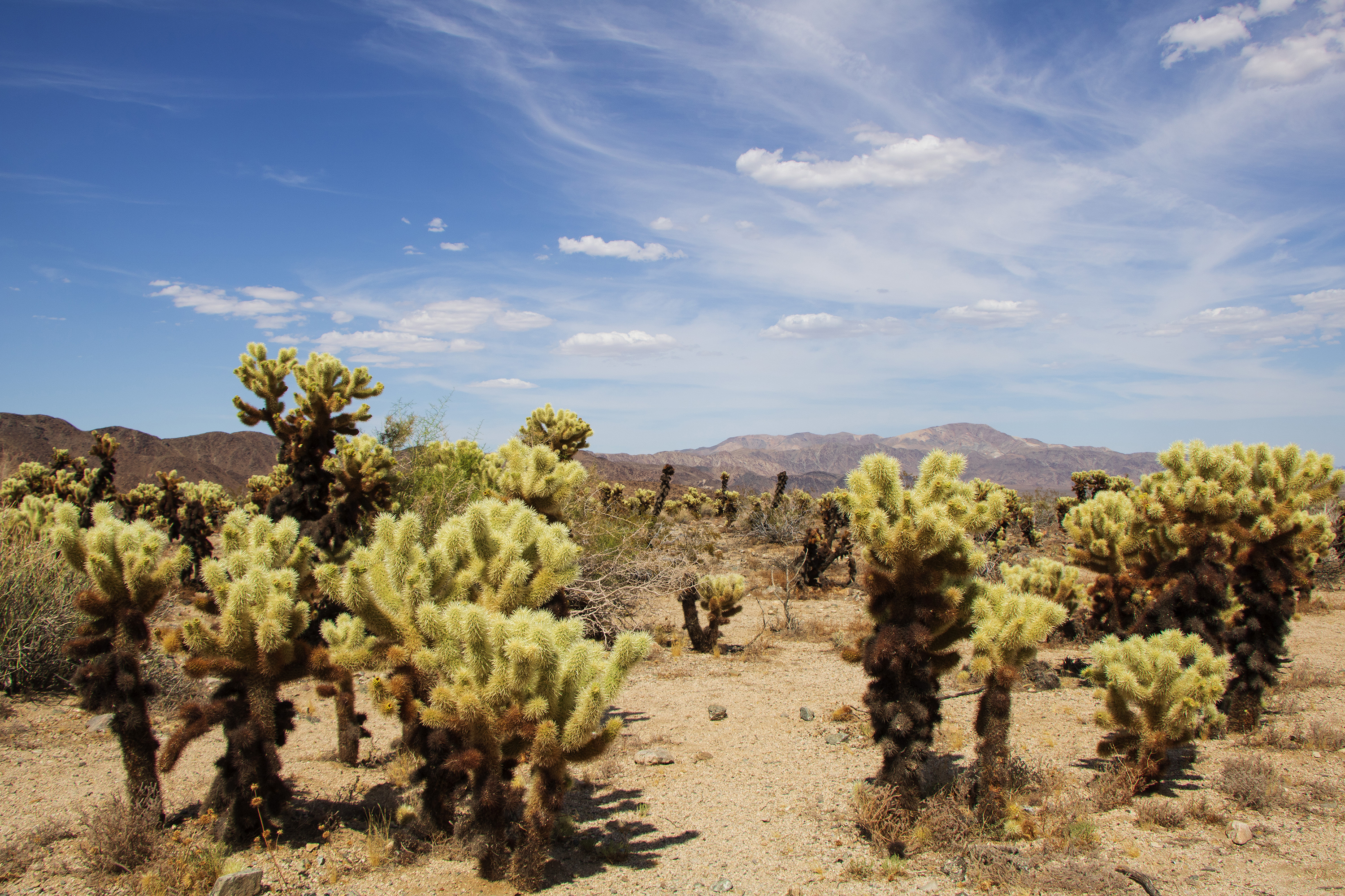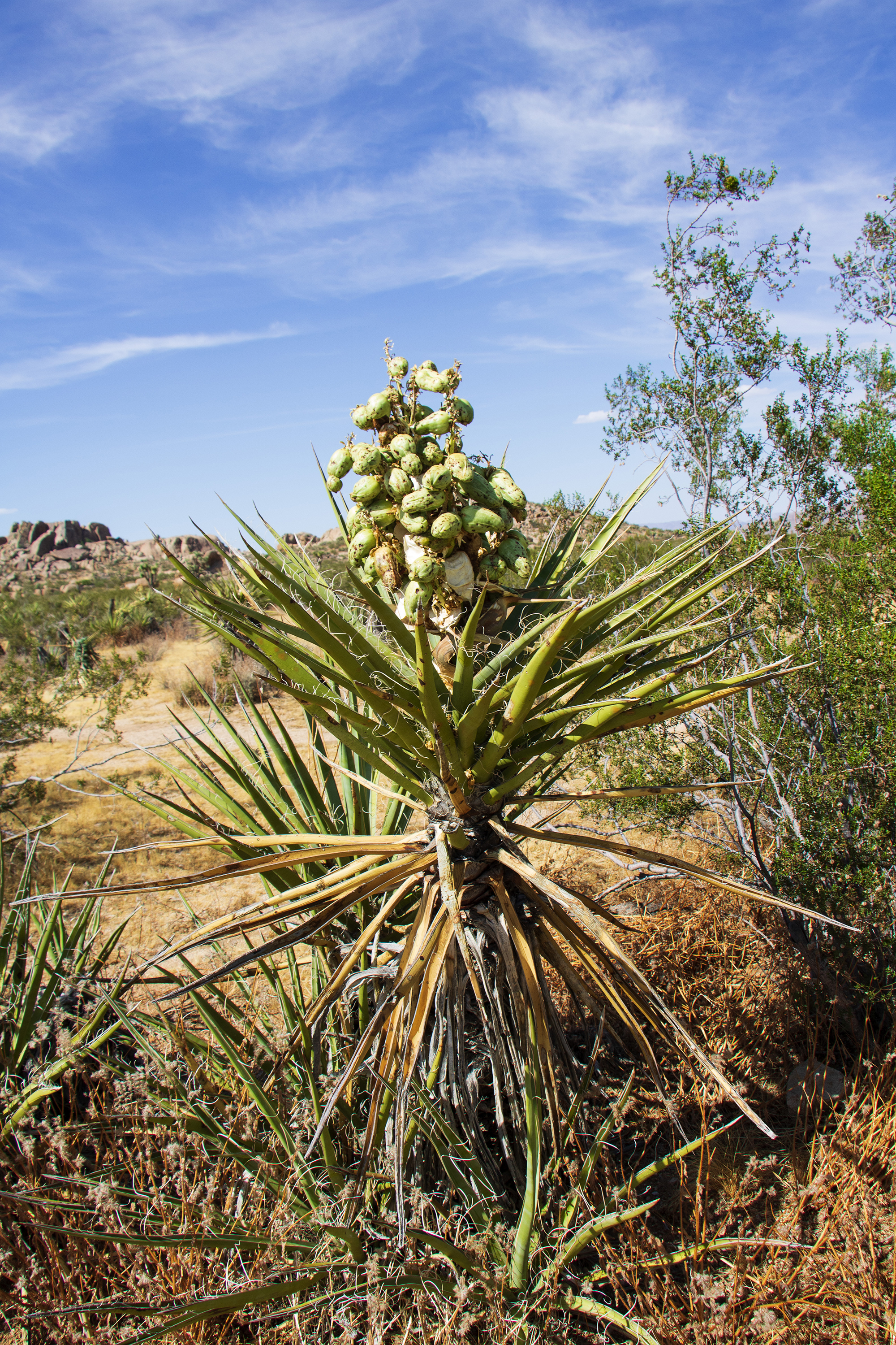 Uiteraard komen wij bij het visitor center weer Nederlanders tegen. Het is ongelooflijk hoeveel Nederlanders wij op deze roadtrip al tegen zijn gekomen. Als eerste halen wij bij een parkranger, onder vertoon van onze parkpas, een plattegrond op. Daarna rijden wij het park in. De eerste kilometers worden gekenmerkt door een woestijnachtige omgeving met een aparte vegetatie.
