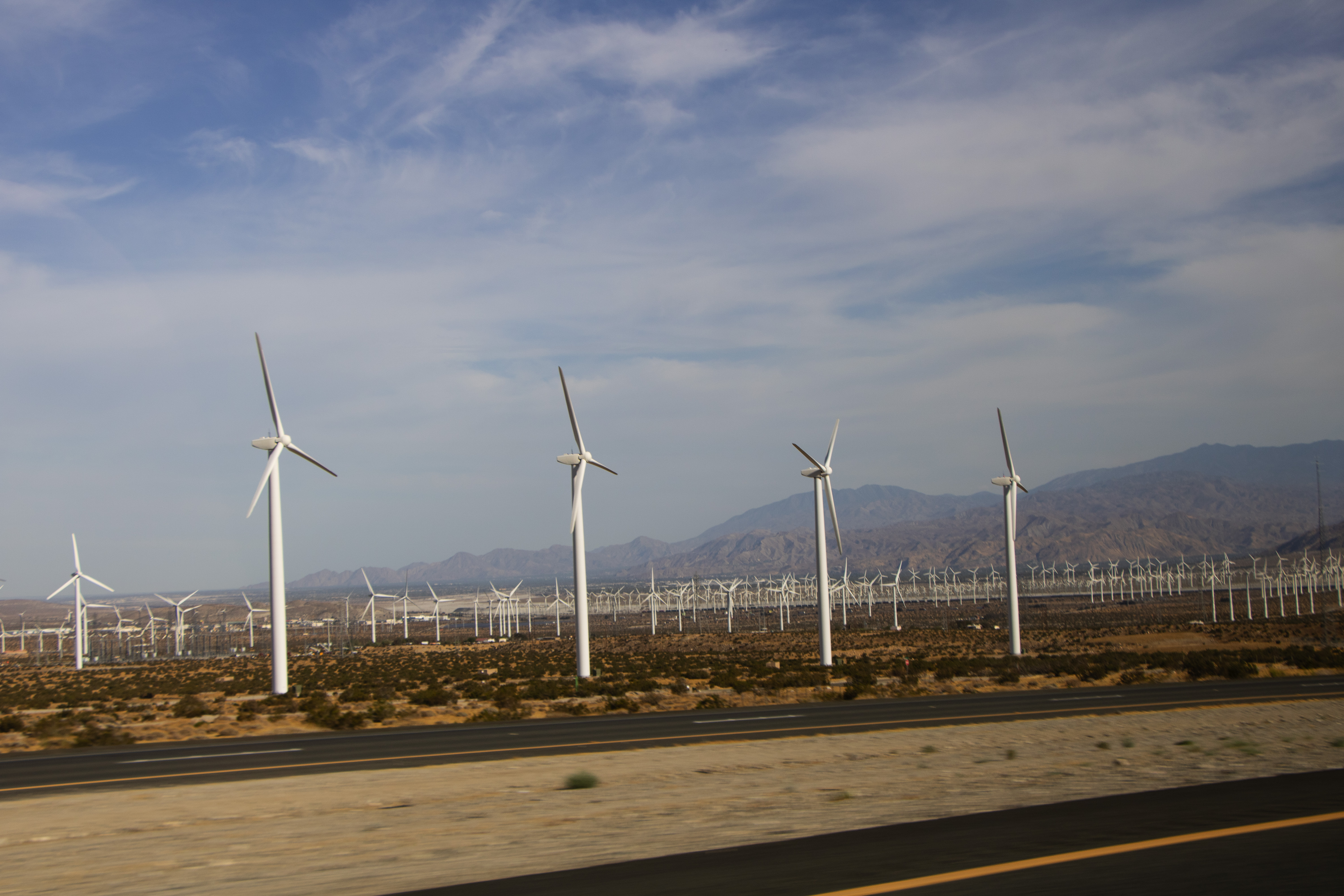 Wij verlaten het park via de zuid uitgang en rijden naar Palm Springs. Palm Springs is omgeven door windmolens en dat ziet best indrukwekkend uit.